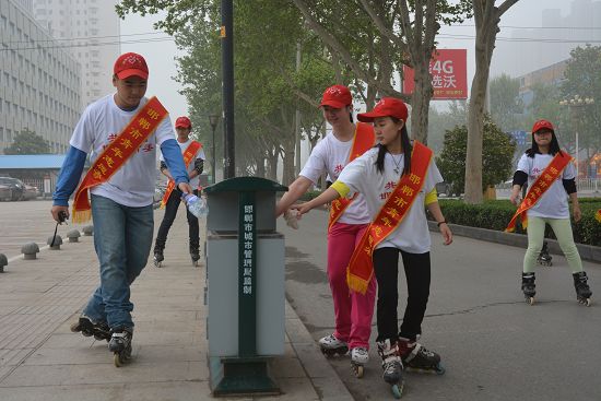[邯鄲新聞]4月20日上午7點(diǎn),由共青團(tuán)邯鄲市委、邯鄲交通廣播電臺(tái)主辦,河北趙王集團(tuán)有限公司協(xié)辦的“善美邯鄲行、最美青春路首屆邯鄲市青少年文化節(jié) 綠色環(huán)保輪滑行活動(dòng)”,在邯鄲學(xué)院如期進(jìn)行。30余名90后輪滑愛(ài)好者組成輪滑環(huán)保志愿服務(wù)隊(duì),身著統(tǒng)一服裝、從邯鄲學(xué)院出發(fā),沿滏河大街-人民路-中華大街滑行,一路上撿拾飲料瓶、塑料袋等白色垃圾,引起了廣大市民的強(qiáng)烈關(guān)注。這次“90后的五四情結(jié)”活動(dòng),展示了青少年的生活風(fēng)采,宣傳了綠色環(huán)保理念。